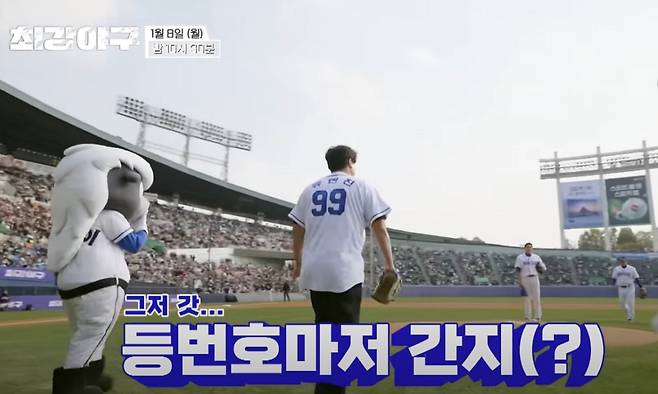 장내 아나운서는 '최강야구' 직관 경기를 기념하는 특별 시구가 진행될 것이라 안내했고 위풍당당한 걸음으로 메이저리거 류현진이 등장한다.