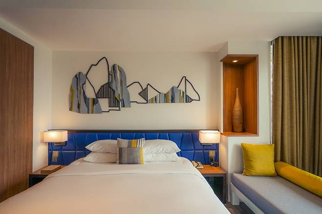 트렌디하고 스타일리시한 이미지를 지향하는 브랜드답게 객실은 젊고 세련되게 꾸몄다. 전체적으로 자연과 어우러지는 우드톤이지만 노란색과 파란색으로 포인트를 줬다. 전용 발코니 야외 욕조에서 바다와 절벽을 바라보며 즐기는 반신욕도 특별하다. 울창한 숲속에 비밀스레 자리한 풀빌라는 전용 수영장과 야외데크, 거실을 갖춰 프라이빗한 휴가를 보장한다.