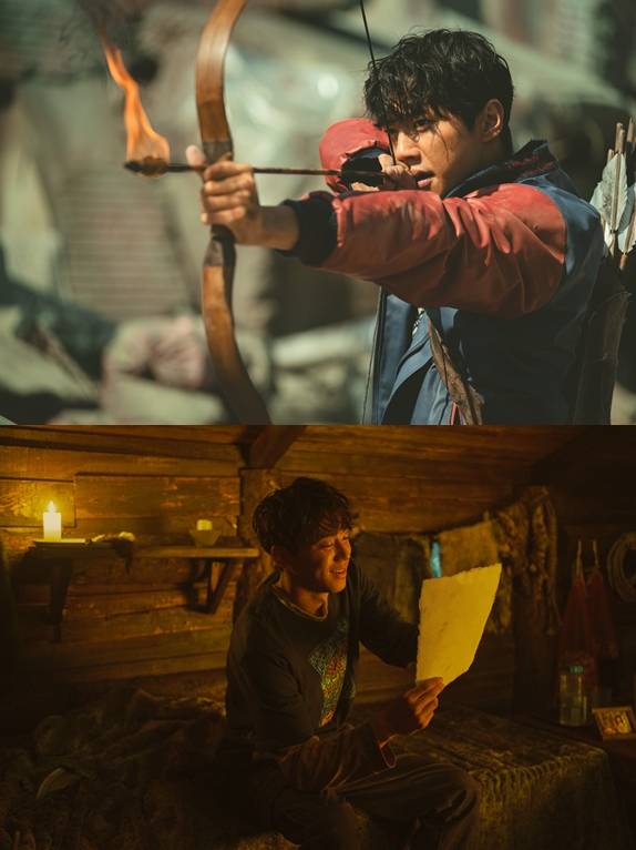먼저, 묵직한 존재감을 발산하는 황야의 사냥꾼 남산(마동석 분)의 캐릭터 스틸은 거친 표정부터 총기로 상대방을 한 번에 제압하는 남산의 임팩트 있는 모습까지, 폐허가 된 세상에서 거침없는 액션을 선보일 남산을 기대하게 한다.