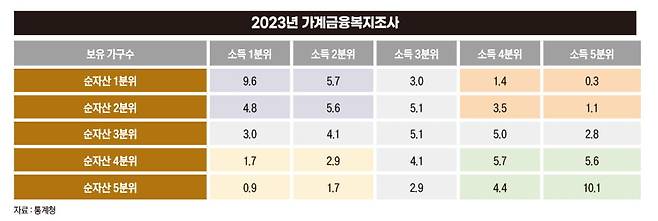 하지만 현실의 세계에서는 반드시 그런 것은 아니다. 통계청에서 발표한 ‘2023년 가계금융복지조사’에 따르면 소득 수준과 자산 수준이 반드시 일치하는 것은 아니라는 것을 알 수 있다.