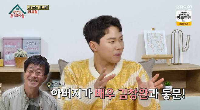 가수 김창완과 동기인 아버지는 서울대 출신. 양세형은 "아버지 출신 학교를 20살 넘어서 처음 들었다. 한번도 말씀 안하셨다. 집안의 기대를 많이 받고 살았는데 그 기대에 부응하지 못한 삶에 대해 늘 힘드셨던 것 같다"며 "아버지가 항상 당구장을 차리고 싶어하셨다. 그래서 상가를 사드리고 당구장을 하실수 있게 인테리어 해드렸다. 실제 운영하시면서 너무 행복해하셨다"고 말했다.