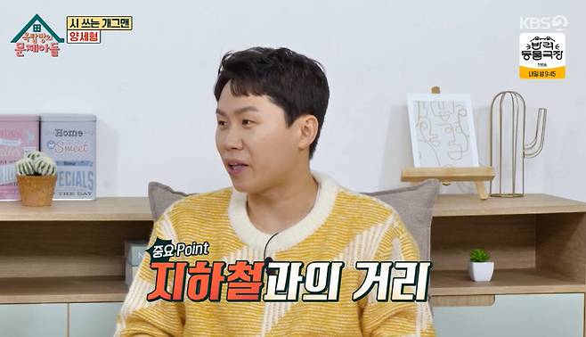 특히 건물을 사기 전 임장만 무려 100군데 이상 봤다며 "그 동네를 매일 가보고 주위를 많이 둘러봤다. 원래 지하철역에서 도보 8분 거리인데 내 건물이 되고 나니까 나도 모르게 걸음이 빨라져 단 4분대를 찍게 됐다"고 말했다. 김종국이 "3분대 찍어줘?"라고 말하자 양세형은 "제발 해달라"고 건물에 대한 애정을 드러냈다.