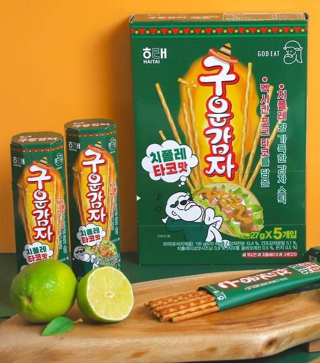 11일 유통업계에 따르면 해태제과(해태제과식품)는 최근 SNS 유명 타코 맛집인 '갓잇'과 협업해 '구운감자 차폴레타코맛'을 출시했다.