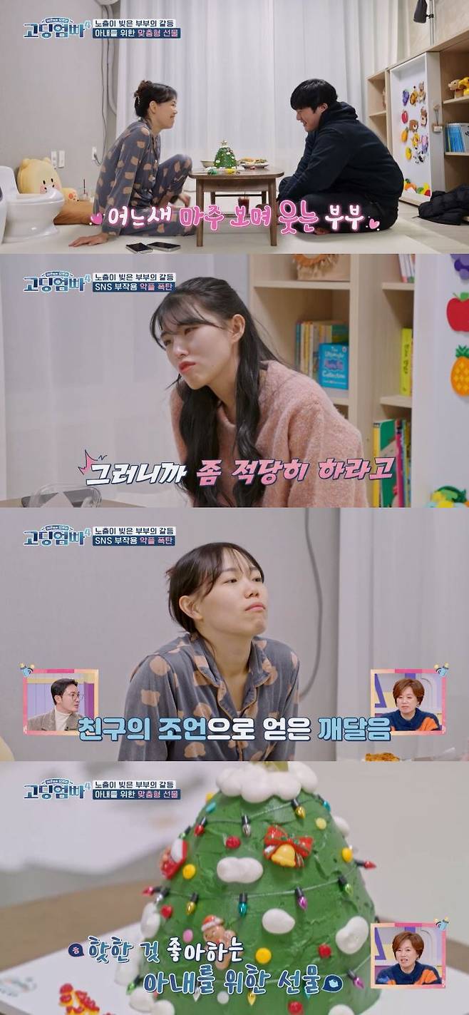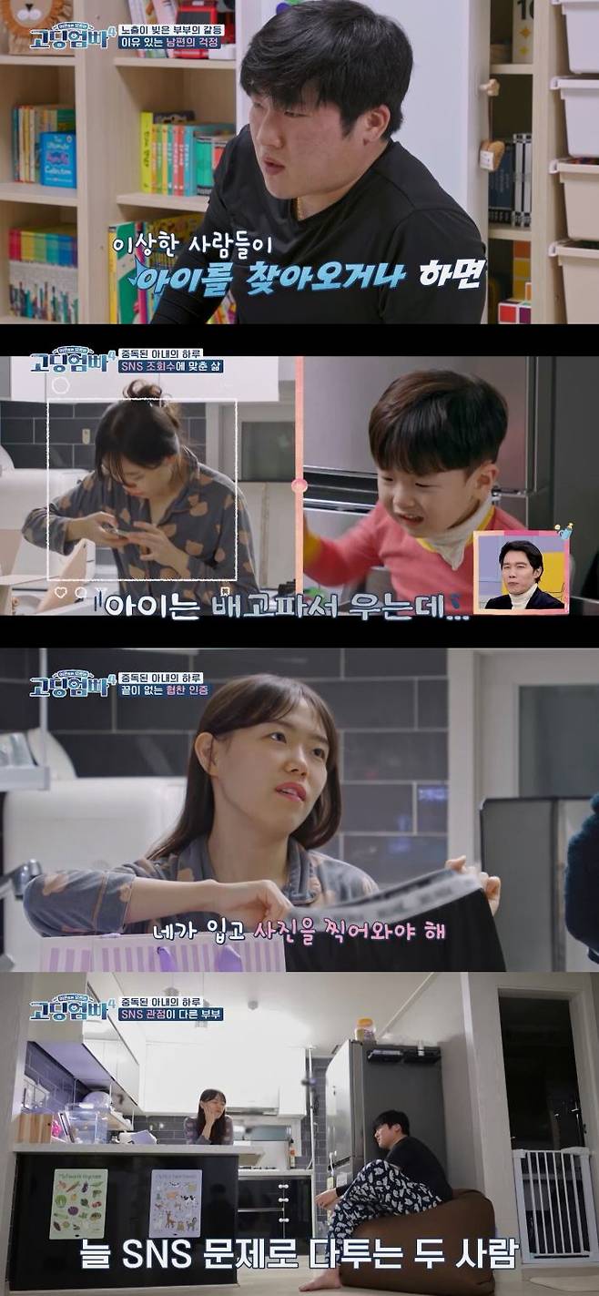 SNS 활동을 본업으로 삼고 싶은 정채언은 남편이 퇴근하자 "협찬 품목을 패션으로 확장하기 위해 투자하고 싶다"며 새 속옷을 건넨 뒤 "착용 인증샷을 찍어달라"고 요청했다. 하지만 최재혁은 "SNS에 내 엉덩이 사진을 올리는 건 싫다"며 완강히 거부했다. 분위기가 급격히 싸늘해진 가운데, 저녁으로 주문한 배달 음식이 도착하자 정채언은 다시 휴대폰을 들고 '음식 언박싱'을 촬영했다. 결국 최재혁은 "이렇게 자꾸 (일상을) SNS에 올리면, 우리 집과 차 번호 등 모든 동선이 드러나는데, 혹시 이상한 사람들이 아이를 찾아오거나 하면 어떡하냐"며 목소리를 높였다. 그러나 정채언은 "쓸데없는 걱정"이라며, SNS 활동에 대한 의지를 굽히지 않았다.
