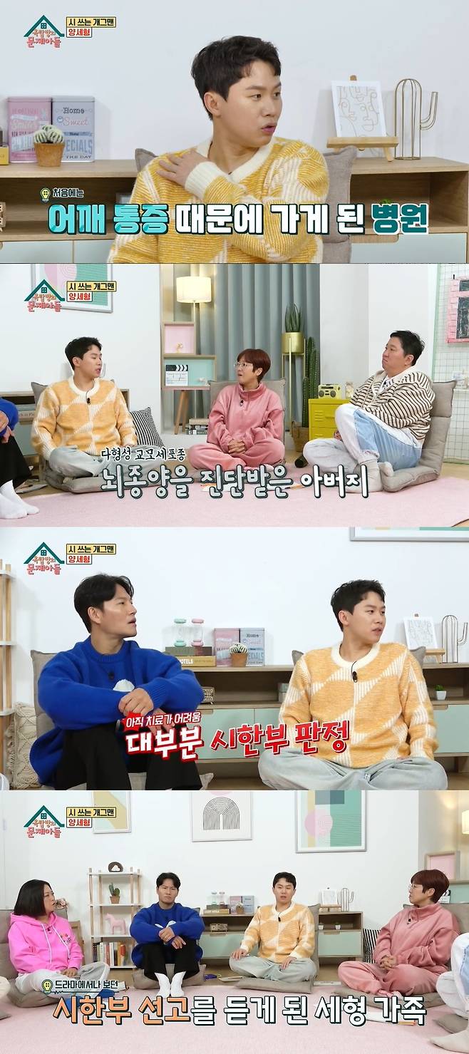 양세형은 "아버지가 어깨가 아프시다고 하셔서 병원에 갔는데, 뇌암 판정을 받았다. 다형성 교모세포종이라는 뇌종양 진단이었는데, 그건 무조건 시한부 선고가 나온다"고 설명했다.