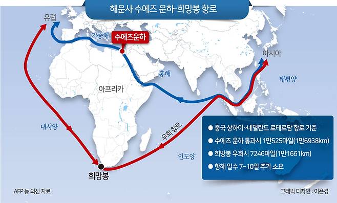 대형 글로벌 선사들이 홍해 운항을 중단하고 남아공 희망봉으로 우회하는 대체 경로를 택하면서 물류 비용과 운송 지연에 따른 주요 공급망의 비용 부담도 가중되고 있다.