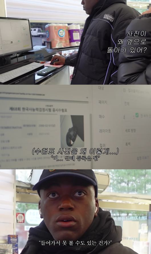 시험 1시간 전, 조나단은 급하게 편의점으로 향했다. 수험표를 미리 뽑아오지 못했기 때문. 그러나 수험표 사진은 반대로 돌아가 있었고, 조나단은 물론 제작진도 당황한 모습이었다. 조나단은 “들어가서 못 볼 수도 있는 건가?”라며 당황스러워 했고, 제작진은 “에이 설마. 근데 이런 경우는 처음 보긴 한다”고 의아해 했다.