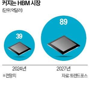 삼성전자가 공격적인 투자를 결정한 까닭은 AI 기술이 고도화해 HBM 등 고사양 메모리 반도체 수요가 증가하고 있기 때문이다. D램은 AI 가속기 안에서 중앙처리장치(CPU)나 GPU에 붙어 대용량 데이터를 처리한다. AI 기술 확산으로 처리해야 할 데이터가 늘면서 HBM 수요도 기하급수적으로 증가하고 있다. 시장조사업체 트렌드포스에 따르면 HBM시장 규모는 올해 39억달러에서 2027년 89억달러로 급증할 것으로 전망된다. 한 부사장은 “업황에 흔들리지 않고 꾸준하게 투자 규모를 유지해 시장 확대에 대응할 것”이라고 강조했다.