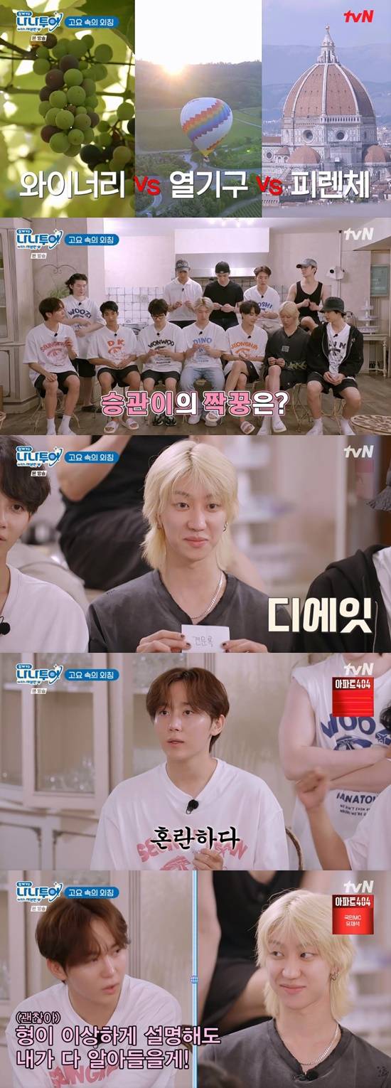 게임 종목은 고요 속의 외침이었다. 디에잇과 한 팀이 된 부승관은 "개떡같이 설명해도 찰떡같이 알아듣겠다"고 말했다.