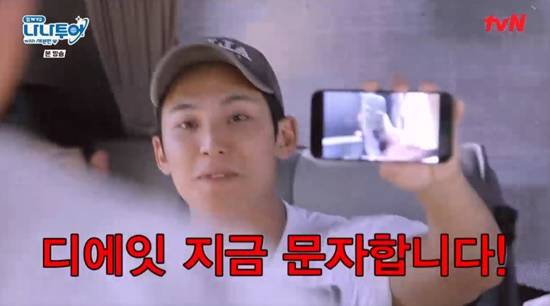 디에잇이 에스쿱스에게 실시간으로 '형, 지금 뭐 해?'라고 메시지를 보냈던 것.