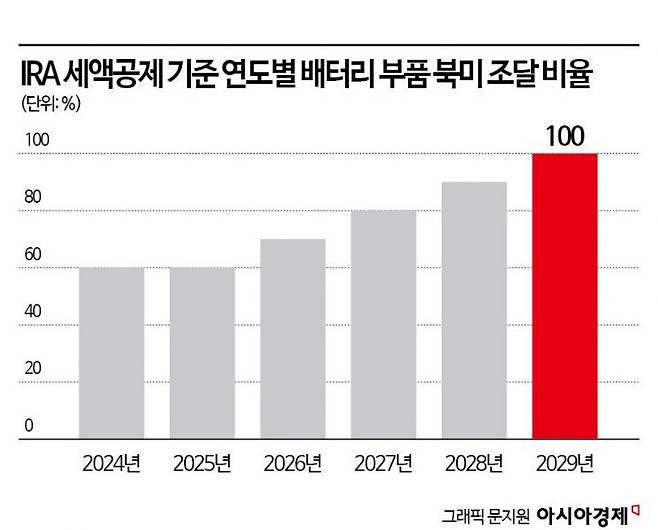 하지만 앞으로 이러한 구도에도 변화가 예상된다. 변화의 시발점은 미국 IRA다. IRA에서 분리막은 '배터리 부품'으로 분류됐다. IRA 규정에 따르면 2024년 기준 북미에서 제조 또는 조립한 배터리 부품의 비중이 60% 이상이어야 정부로부터 전기차 보조금을 받을 수 있다. 이 비중은 2026년에는 70%로 상향된다. 이후 매년 10%씩 높아진다. 2029년에는 100% 북미에서 제조 또는 조립한 부품을 써야 한다.
