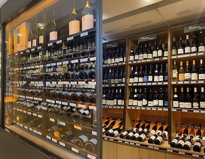 특히 매장 안쪽으로 들어가면 고급 와인을 따로 진열해 놓은 공간이 나오는데요. 가끔씩 여기서 부르고뉴 지역의 고급 와인을 상대적으로 저렴하게 구하실 수도 있습니다. 매장 한편에 와인을 마실 수 있는 공간도 있는데요. 이곳에서 샴페인이나 와인을 간단한 안주와 함께 한 잔 할 수도 있습니다.