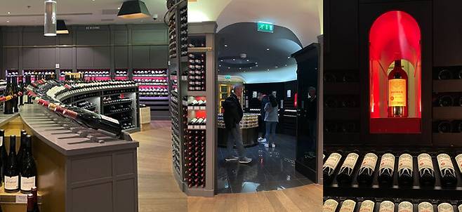 라파예트는 식품관이 아예 따로 있는데 2층에 엄청난 규모의 와인샵이 있습니다. 특히 라파예트 와인샵의 압권은 가운데 위치한 고급 보르도와인 코너입니다. 이곳에서 보르도 좌안의 5대 샤또, 보르도에서 가장 비싼 와인인 페트뤼스, 우안의 상징인 슈발블랑 등 최고급 보르도와인의 다양한 빈티지를 만나실 수 있습니다. 또 가운데에 아름다운 색을 가진 샤또 디켐도 전시되어 있는데요. 무려 1899년 빈티지도 실물을 볼 수 있습니다. 이 코너 바깥쪽에는 보르도의 다른 그랑크뤼 와인들이 빈티지별로 나열되어 있어 원하는 샤또의 생빈을 찾아보는 재미도 있을 거예요. 또 라파예트에는 보르도의 정말 오래된 빈티지(1950~1990년대)들도 판매하고 있습니다. 어차피 라파예트는 가격이 다른 곳보다 좀 비싼 편이라 차라리 다른 샵에서는 구하기 힘든 올드 빈티지 와인을 구매하시는 것도 팁이 될 수 있습니다.
