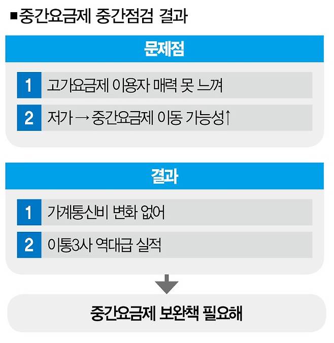 이런 상황에서 가성비가 뛰어난 중간요금제를 출시하면 고가요금제를 쓰던 고객이 중간요금제로 갈아탈 가능성을 배제하기 어렵습니다. 그러면 이통사 실적의 바로미터로 불리는 '가입자당 평균매출(ARPU)'이 감소해 수익성이 악화할 공산이 큽니다. 이통3사가 중간요금제의 출시를 꺼렸던 이유가 여기에 있습니다.