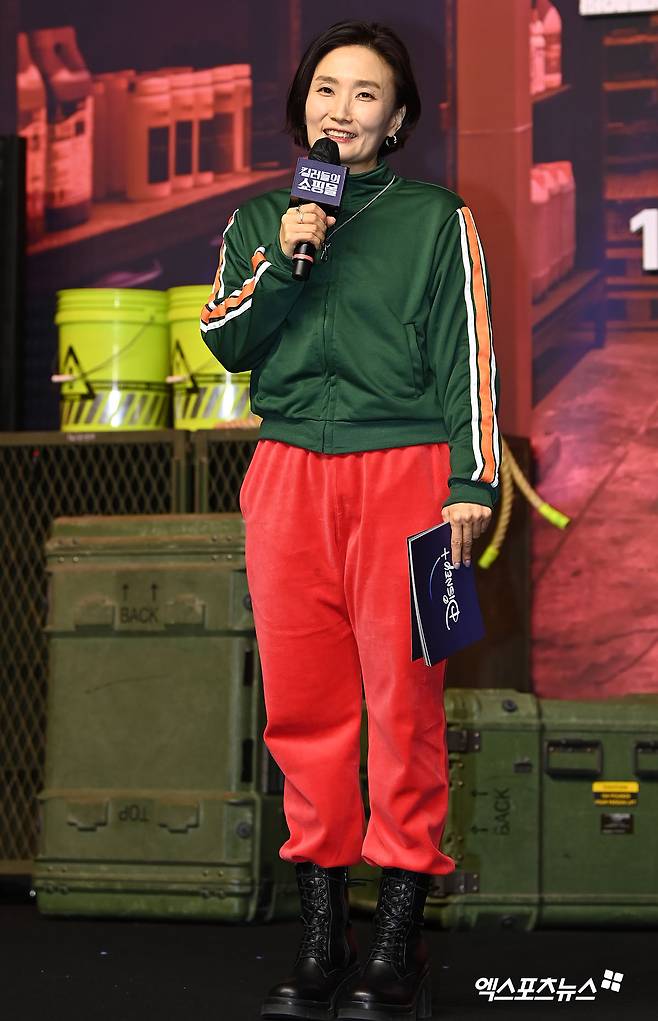 이날 디즈니+ '킬러들의 쇼핑몰' 제작발표회에 참석한 박경림이 사회를 보고 있다.
