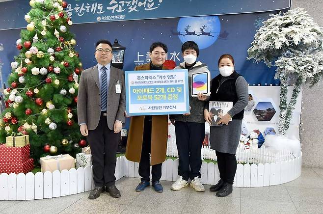 화순전남대학교병원은 몬스타엑스 형원의 익명 팬이 (사)기부천사를 통해 아이패드 2개, CD와 포트북 52개를 전달했다고 15일 밝혔다.