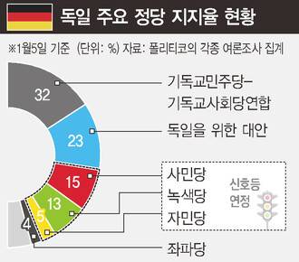 최근 독일에서는 사민·녹색·자민당으로 구성된 이른바 ‘신호등 연정’의 인기가 추락하면서, 기민·기사련과 ‘독일을 위한 대안’의 인기가 상승하고 있다. 정치 매체 폴리티코가 집계한 여론조사 추이를 보면 기민·기사련과 독일을 위한 대안은 각각 32%와 23%로 지지율 1·2위를 기록하고 있다.
