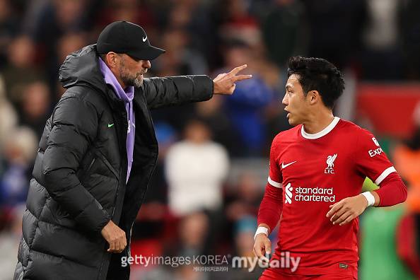 [엔도 와타루, 위르겐 클롭 리버풀 감독. 사진 = 게티이미지코리아]