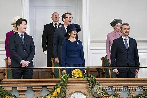 From front row left, Denmark's Crown Prince Christian, King Frederik X and Queen Mary, back row from left, Princess Benedikte, Prince Joachim and Queen Margrethe attend Folketingsalen, the Danish Parliament, at Christiansborg Castle, in Copenhagen, Monday, Jan. 15, 2024. Denmark’s new King Frederik X has visited the Danish parliament on his first formal day on the job. His mother, Queen Margrethe, abdicated on Sunday after 52 years on the throne, the first Danish monarch to do so in nearly 900 years. (Ida Marie Odgaard/Ritzau Scanpix via AP) DENMARK OUT; MANDATORY CREDIT