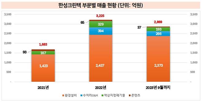초순수 사업이 확대되며 회사 매출은 증가세다. 연도별 매출을 살펴보면 2021년 1683억원에서 2022년 3225억원, 작년 3분기 누적 2869억원으로 커졌다. 최근 3년간 초순수 관련 매출은 약 2400억원으로 전체 매출의 38%를 차지했다.