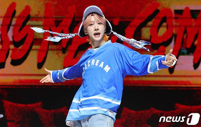 (서울=뉴스1) 김진환 기자 = 펜타곤 후이가 16일 오후 서울 광진구 예스24라이브홀에서 열린 첫 번째 미니앨범 'WHU IS ME : Complex'(후 이즈 미 : 콤플렉스) 발매 기념 쇼케이스에서 퍼포먼스를 선보이고 있다. 2024.1.16/뉴스1