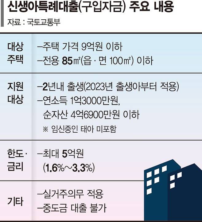 국토부는 또 신생아특례대출의 경우 새 아파트 중도금 대출은 허용하지 않을 계획이다. 단 입주시 잔금 대출은 신생아특례가 가능하다.
