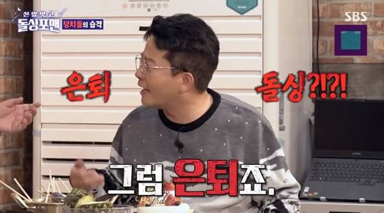 이국주는 "오는 사람이 있으면 가는 사람이 있어야 한다"고 거들었고, 김준호는 "아직 안 했다"고 당황했다. 이국주는 "안 할 건 아니지 않냐. 그럼 은퇴"라고 못 박았다.