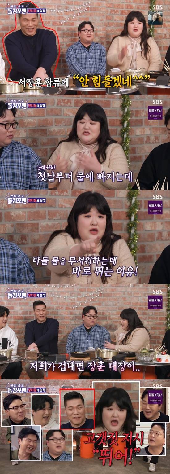 또한 "다들 물을 무서워하는데 바로바로 뛴다. 그 이유는 우리가 겁내면 서장훈이 고갯짓으로 지시한다. 만약에 재미없게 하면 '됐고, 살려!'라고 한다"며 서장훈의 스파르타 촬영을 폭로했다.