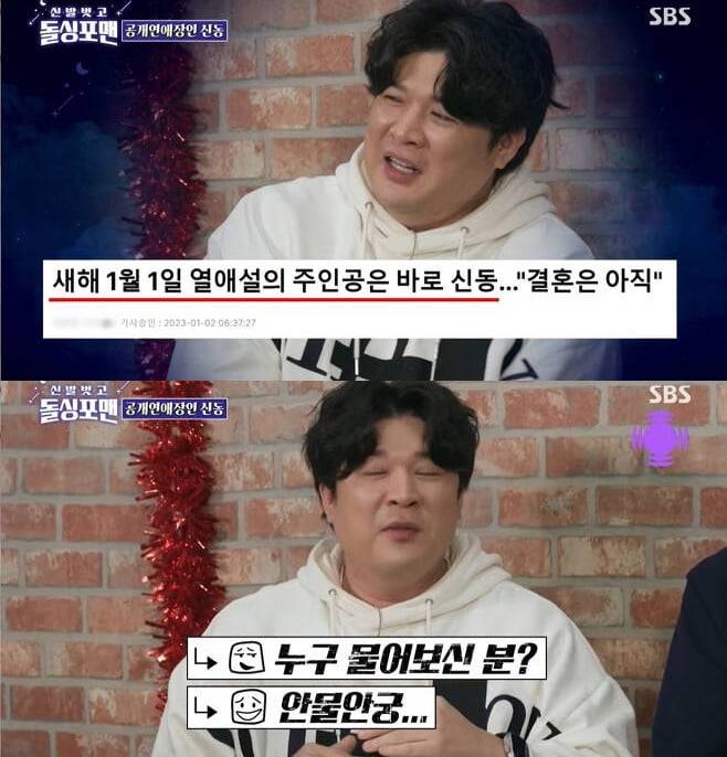이날 신동은 ‘공개 열애 선수’라는 자신의 별명에 대해 설명했다. 그는 "매년 1월 1일에 발표되는 커플이 있지 않나. 2022년에 그분들(이종석, 아이유)의 연애가 12월 31일에 공개가 된 거다. 그 이후 내가 1월 1일 공개됐다. 댓글에 '아무도 관심 없다'는 말이 있더라"라며 "내 연애를 1월 1일에 공개해서 괜히"라고 말했다.