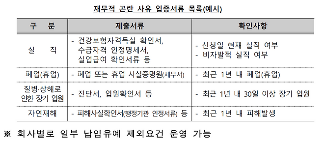 이번 제도 시행에 따라 실직이나 폐업, 휴업 등으로 소득이 급격히 줄어들었거나 질병, 상해로 장기 입원하는 등 경제적인 어려움을 겪는 사람들은 최소 1년 이상 보험계약대출 이자 납입을 미룰 수 있습니다.