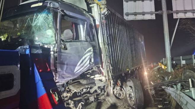 어젯(17일)밤 11시 10분쯤 호남고속도로 대전 방향 회덕분기점 근처를 달리던 화물차가 가드레일을 들이받는 사고가 났습니다.
