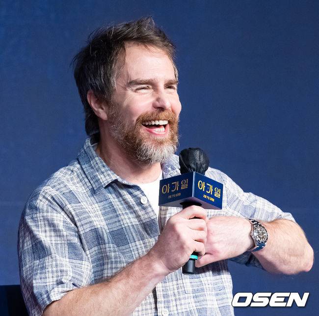 샘 록웰이 기자회견 중 환하게 웃고 있다. 2024.01.18 / rumi@osen.co.kr