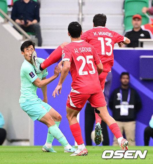 전반 14분 아찔한 장면도 나왔다. 레바논 수비 카릴 카미스가 높이 떠오른 공을 걷어내고 내려오면서 중국 다이웨이쥔의 얼굴을 가격했다. 입 부근을 축구화에 맞은 다이웨이진은 그대로 쓰러졌다.