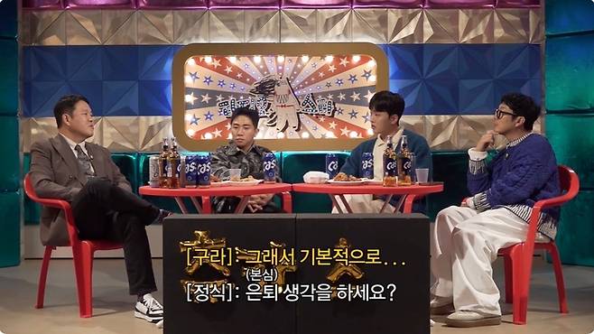 김구라와 유세윤은 '라디오스타' 850회 녹화가 끝난 후 뒤풀이로 하하, 조정식과 이야기를 나눴다.