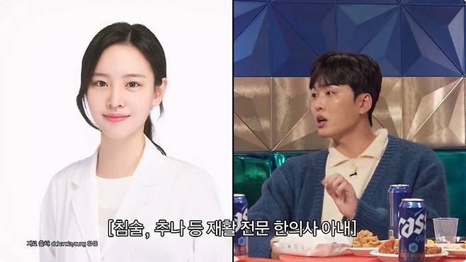 조정식은 “아내가 침을 진짜 잘 놓는다. 재활 전문인데 침술이나 추나다. 너무 잘 한다”라고 애정을 보였다. 이어서 “올해 개원 얘기를 하더라. 요즘 한의원에서 추나를 안 하면 안 되니까. 근데 추나는 완전 생노동이다. 인센티브 시스템이 잘 돼 있으면 힘들어도 동기부여가 될 텐데 월급은 정해져 있어서”라고 밝혔다.