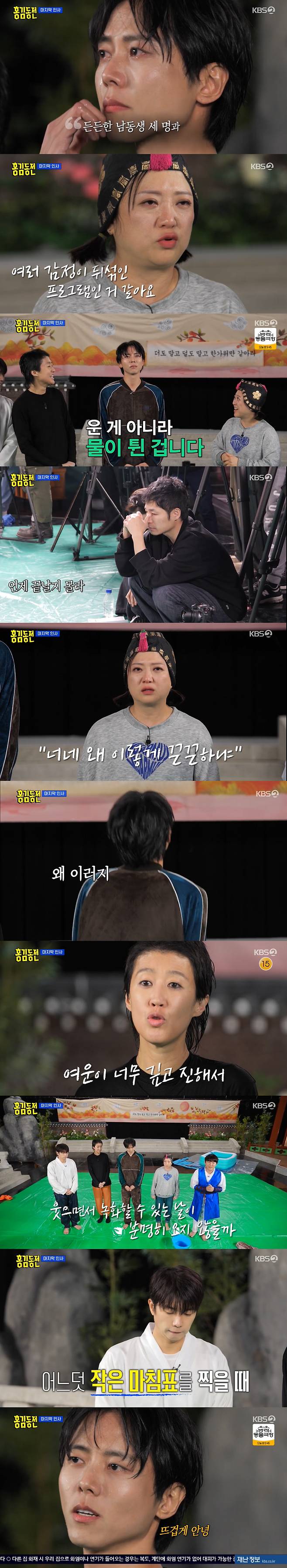 멤버들은 폐지 확정인 '홍김동전' 마지막회 녹화를 하면서 싱숭생숭한 마음을 내비치며 "휘몰아치듯 해야한다. 조금 텀이 있으면 울컥한다"며 마지막 녹화에 열의를 보였다.