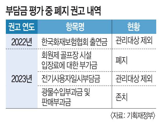 18일 기획재정부의 부담금평가 보고서에 따르면 기재부 산하 부담금 운용평가단이 2021~2023년 평가한 90개 부담금 중 폐지·전환 권고를 받은 부담금은 4개였다. 추후 재검토·조건부 존치 등의 단서가 달린 부담금도 4개였다. 부담금은 특정 공익사업의 이해관계자로부터 사업에 필요한 재원을 걷는 준조세 성격의 비용이다. 교수·연구자 등 민간 전문가로 이뤄진 평가단은 매년 부담금 중 3분의 1을 선정해 존치 여부 등을 검토한다.