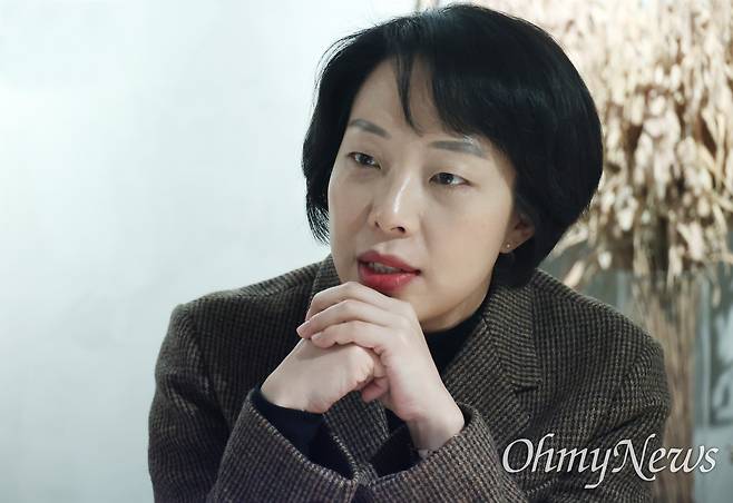 | ▲ 신성아 작가가 16일 오전 경기도 고양 일산동구 한 카페에서 <오마이뉴스>와 만나 돌봄 정책에 대해 이야기를 나눴다. |