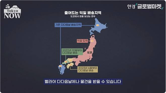 일본 최대 택배회사인 야마토운수는 작년 6월부터 시코쿠와 산인지역을 익일 배송 지역에서 제외했다.