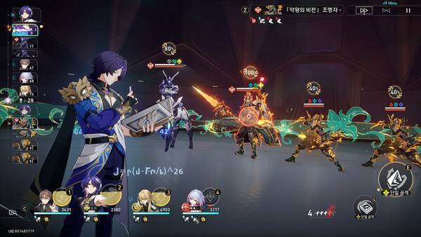 성능은 무료 배포 캐릭터라는 편견 때문일까 걱정했는데 단일 딜러로 꽤나 준수했다. 특히 추가 공격 파티로 조합하면 색다른 재미를 느낄 수 있다. 전투 스킬과 추가 공격이 분필 던지는 모션인데 던지는 재미가 쏠쏠하다.