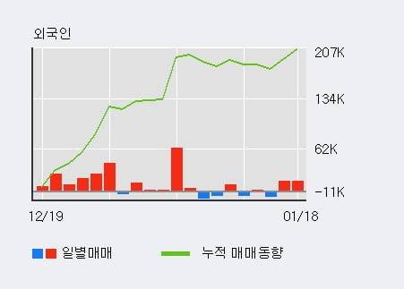 지난 한달을 기준으로 보면 외국인이 20.0만주를 순매수했고, 기관도 6.3만주를 순매수했다. 반면 개인들은 25.9만주를 순매도한 것으로 나타났다. 같은 기간 이 종목의 거래비중은 외국인과 개인이 각각 23.3%, 55.3%로 비중이 높다.