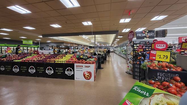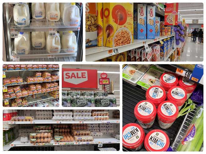 | ▲ 동네의 한 식품매장 물가는 높아졌지만 그나마 물건이 가득 차고 포장된 제품 안에도 제법 알찬 내용으로 채워졌다. 미국에서 싸게 구입 가능했던 소고기, 빵, 과일류의 가격이 체감적으로 많이 올랐다. |
