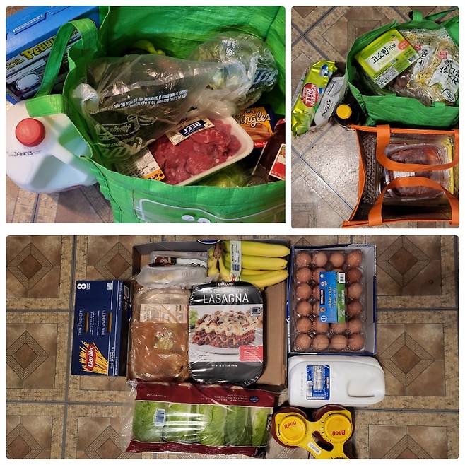 | ▲ 100달러로 장보기 한국 마트, 미국 마트에서는 100달러(13만 원) 정도를, 코스트코에서는 170달러(22만 원) 정도의 장을 보았다. |
