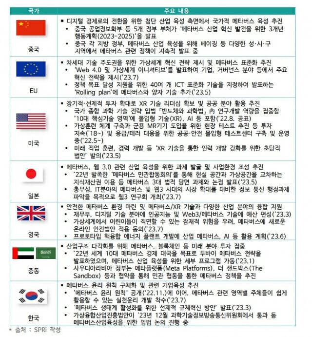 과기정통부 산하 소프트웨어정책연구소(SPRi, 스프리, 소장 김형철)는 미국, 일본, 유럽, 중국 등 주요국의 메타버스 정책 동향을 분석한 보고서를 지난달 온라인으로 공개했다.