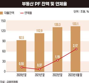 금융권 부동산 PF 대출잔액은 2020년 말 92조5000억원에서 2023년 9월 말 134조3000억원으로 급증했다. 연체액도 계속 늘고 있다.