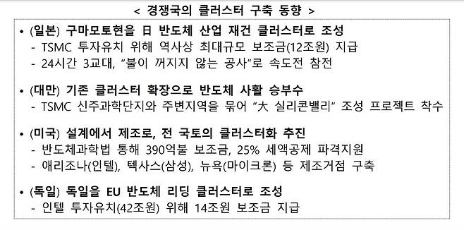 | ▲ 반도체 클러스터 조성이 필수적이고 경쟁국들도 그렇게 하고 있다는 산업부의 주장. 사실은 정반대입니다. |