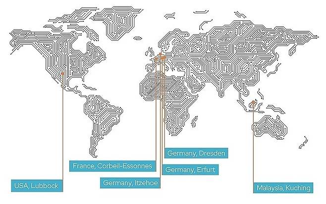 | ▲ 유럽의 반도체 업체인 XFAB. 독일, 프랑스, 미국, 말레이시아에 팹이 있고, 독일 안에서도 각각 다른 지역에서 팹을 운영하고 있습니다. |