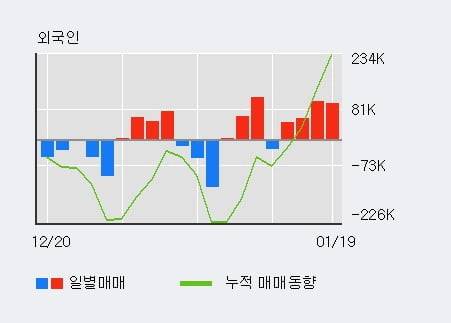 지난 한달을 기준으로 보면 외국인이 30.9만주를 순매수했고, 기관도 31.8만주를 순매수했다. 반면 개인들은 81.4만주를 순매도한 것으로 나타났다. 같은 기간 이 종목의 거래비중은 외국인과 개인이 각각 13.7%, 77.8%로 비중이 높다.