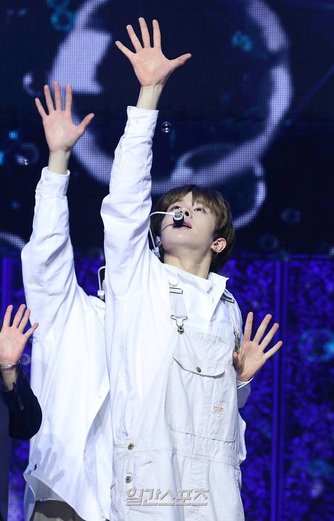 그룹 TWS(투어스) 경민이 22일 오후 서울 용산구 블루스퀘어 마스터카드홀에서 열린 데뷔 미니 1집 'Sparkling Blue' 발매 기념 미디어 쇼케이스에 참석해 타이틀곡 '첫 만남은 계획대로 되지 않아' 무대를 선보이고 있다.