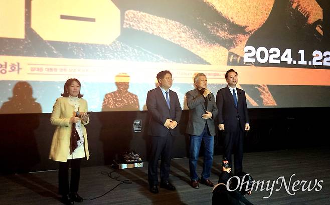 문 전 대통령은 "오늘 영화를 함께 보자는 제안을 제가 먼저 했다. 존경하는 김대중 대통령의 영화를 시민분들과 함께 볼 수 있어 기쁘다"고 말했다.